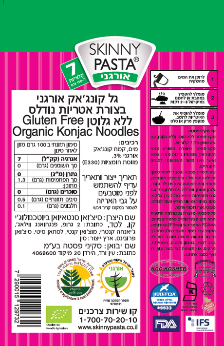 מארז 7 יח' סקיני פסטה קונג'אק אורגני בצורת נודלס (מחיר ליח' 12.7 שח) 89.00 ₪111.30 ₪מחיר ל-100 גרם: 4.7 ₪