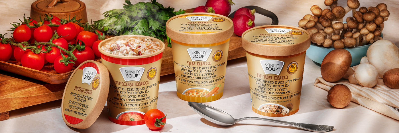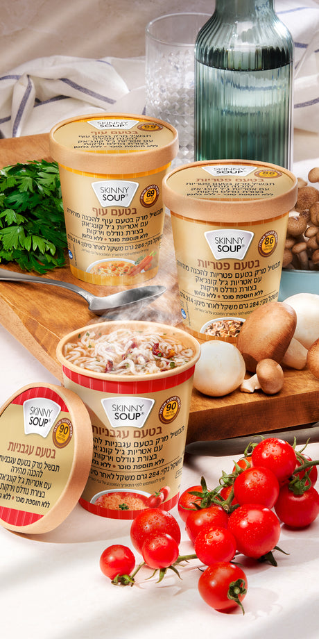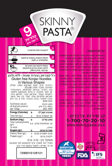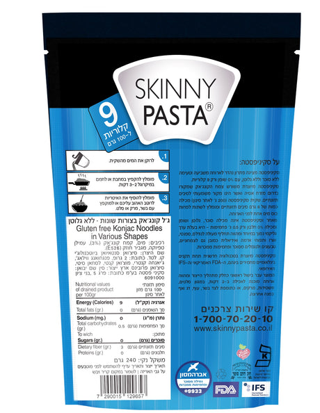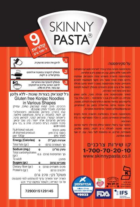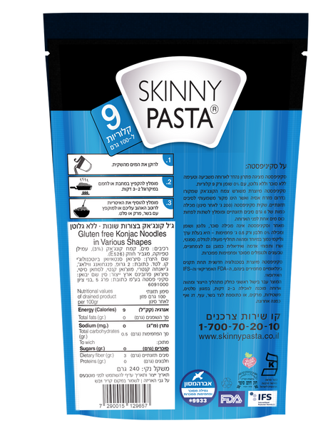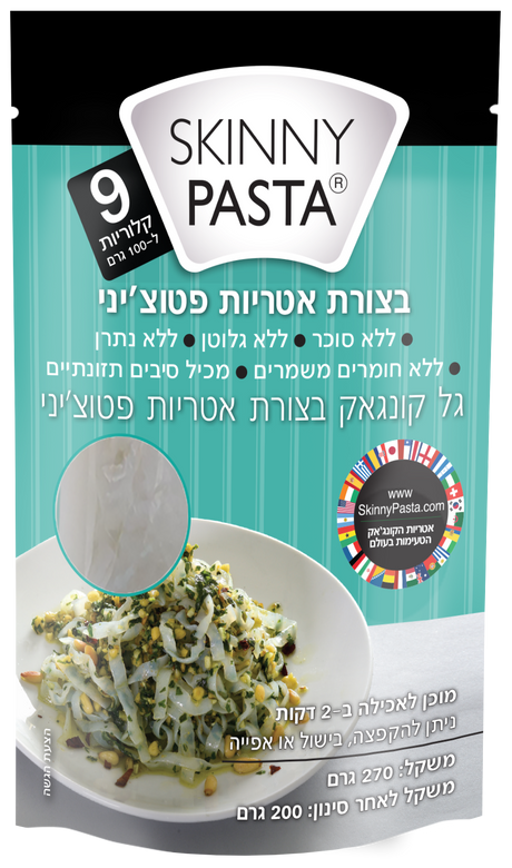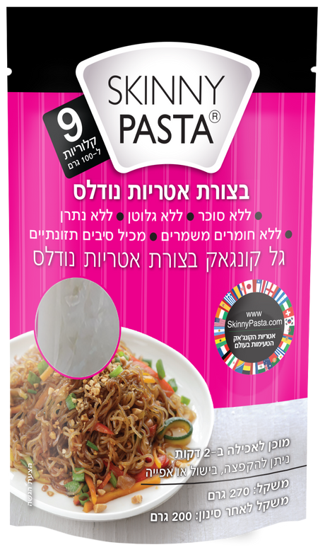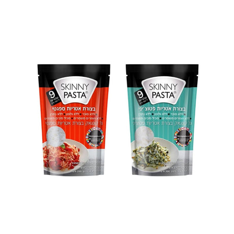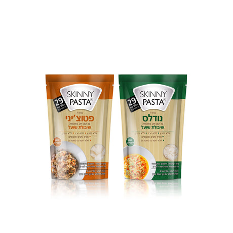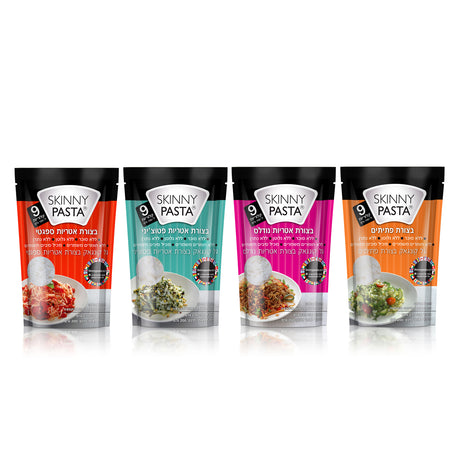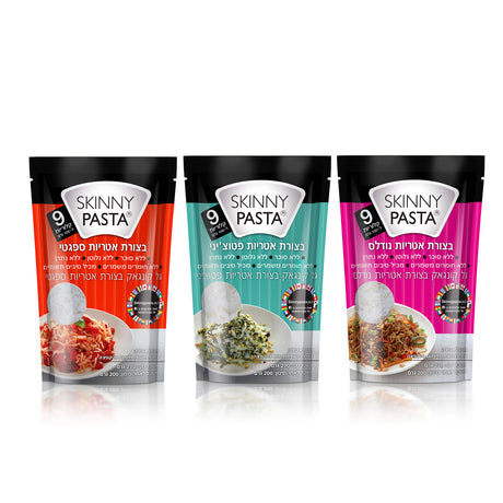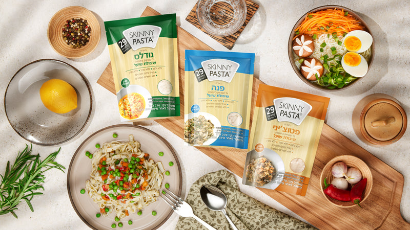 סקיני פסטה, חלוצה בתחום המזון הדיאטטי בישראל, החלה את דרכה עם אטריות הקונג'אק המהפכניות – רק 9 קלוריות ו-0.5 גרם פחמימות ל-100 גרם! מאז, אנו ממשיכים לחדש ולהרחיב את מגוון המוצרים שלנו.