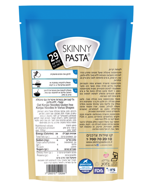 מארז 30 יחידות סקיני פסטה קונג'אק נודלס וספגטי (מחיר ליח' 8.9 ש"ח) 269.00 ₪405.00 ₪מחיר ל-100 גרם: 4.48 ₪