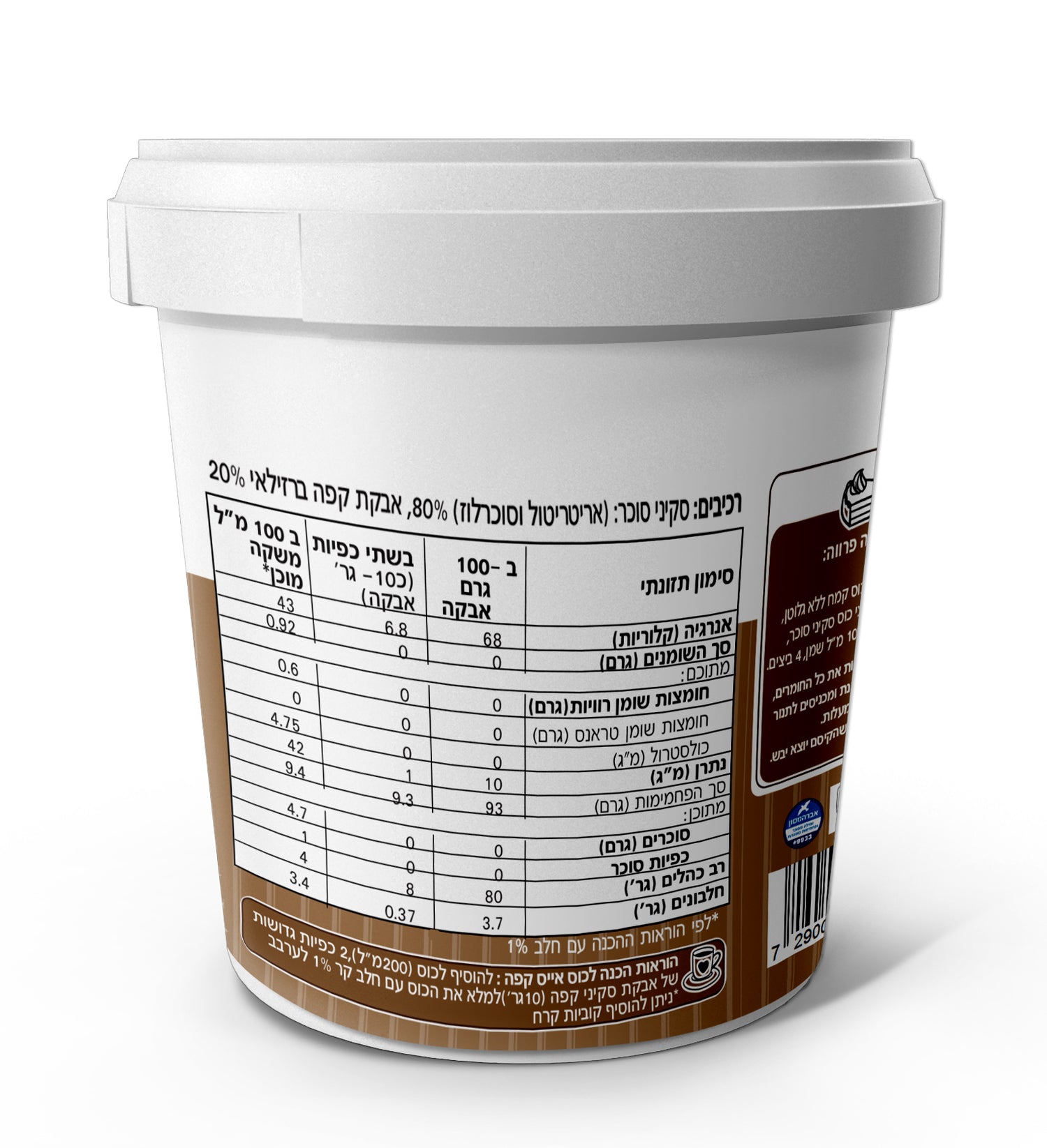 אבקה להכנת משקה קפה קר או חם ללא סוכר
